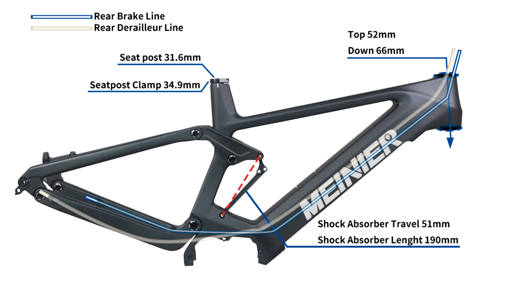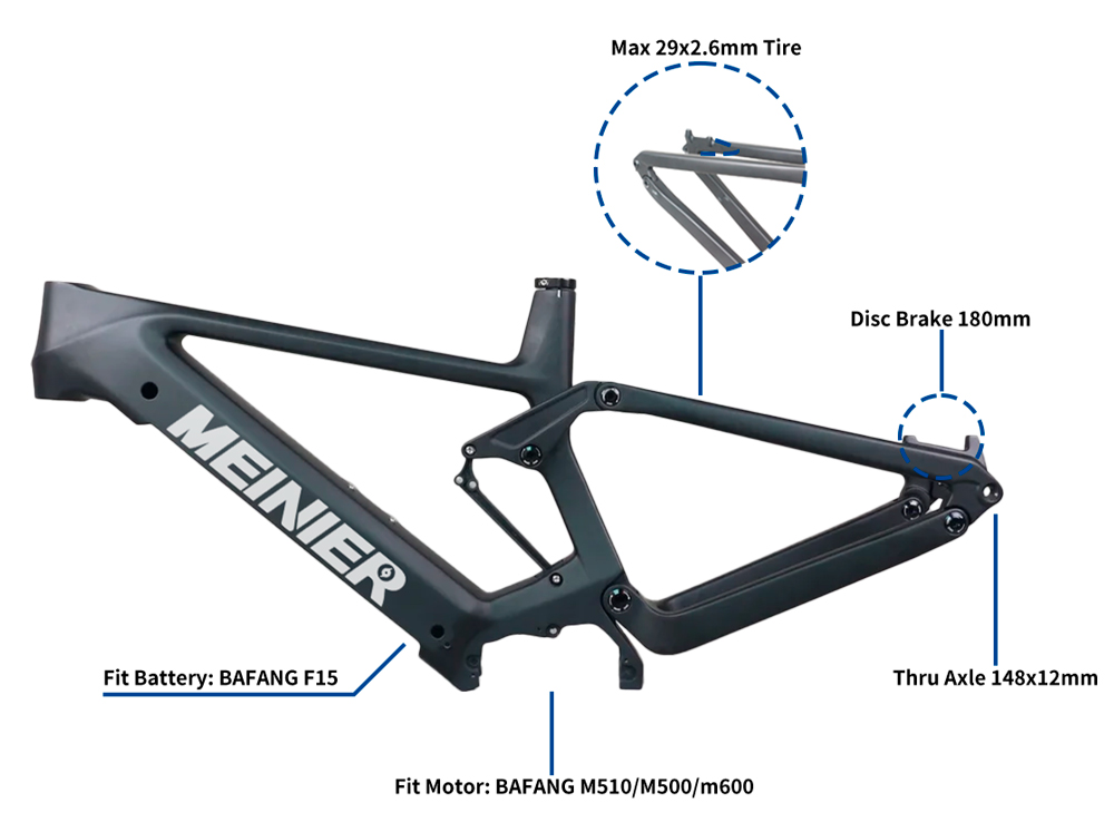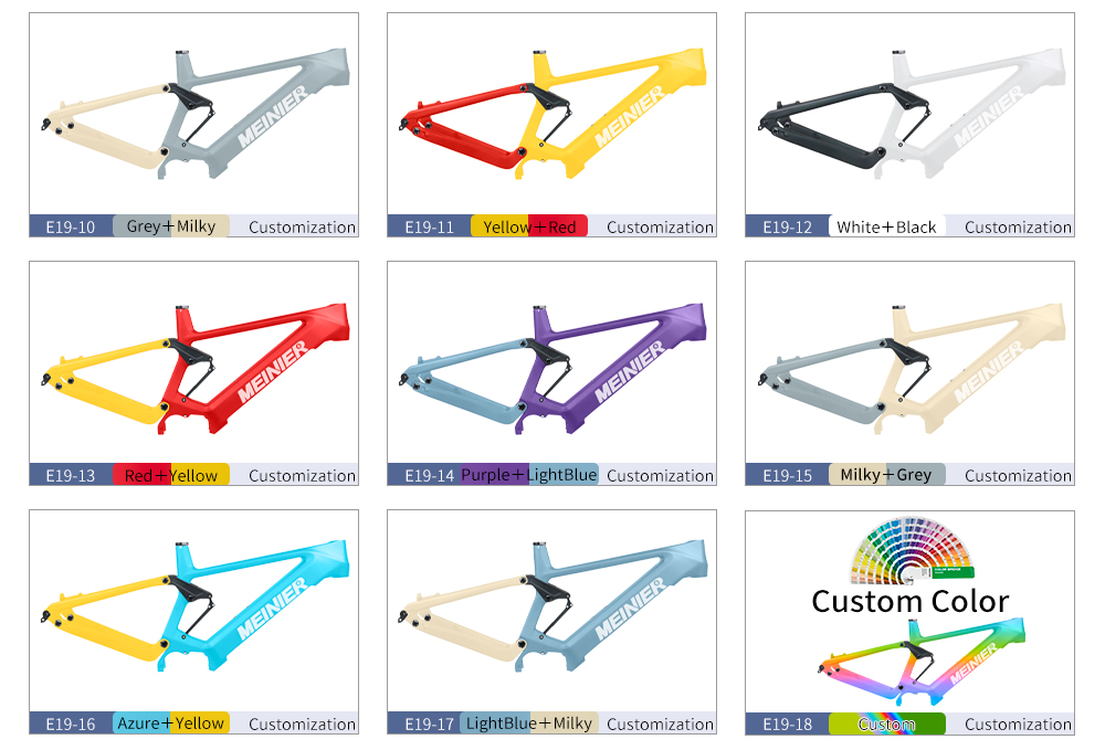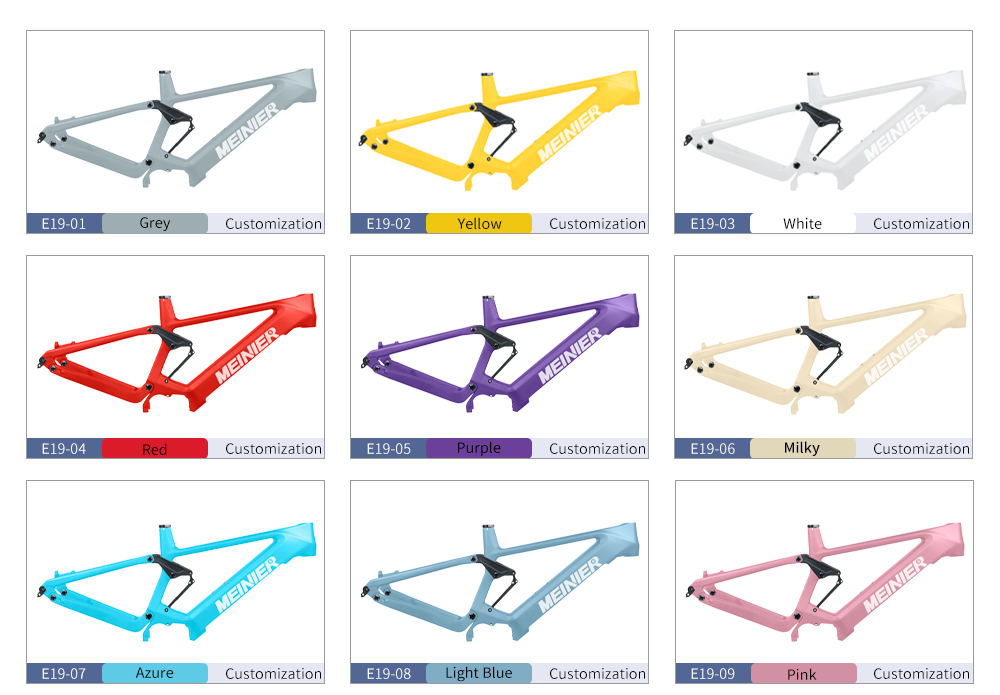 Product name: Carbon fiber electric mountain bike frame Keywords: Carbon fiber electric mountain bike frame Product model: MEINIER-E19