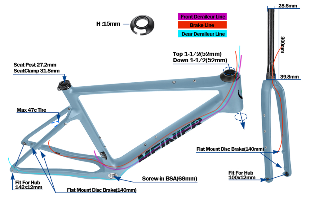 Carbon Bicycle Frame Disc Brake Road Frame 700C x47C Gravel Bike Frameset